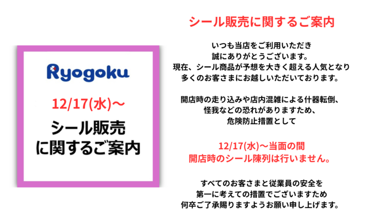 店舗でのシール販売に関するご案内